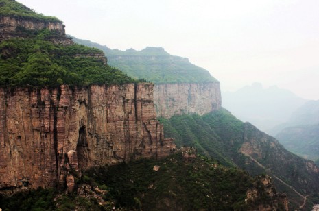 5.3日早6点抱犊寨出发途经老龙口,下天梯到达八里沟景区入口历时6小时,沿途景观为老龙口绝壁,以及天梯和八里沟景区。强度不大以平路和下降为主。